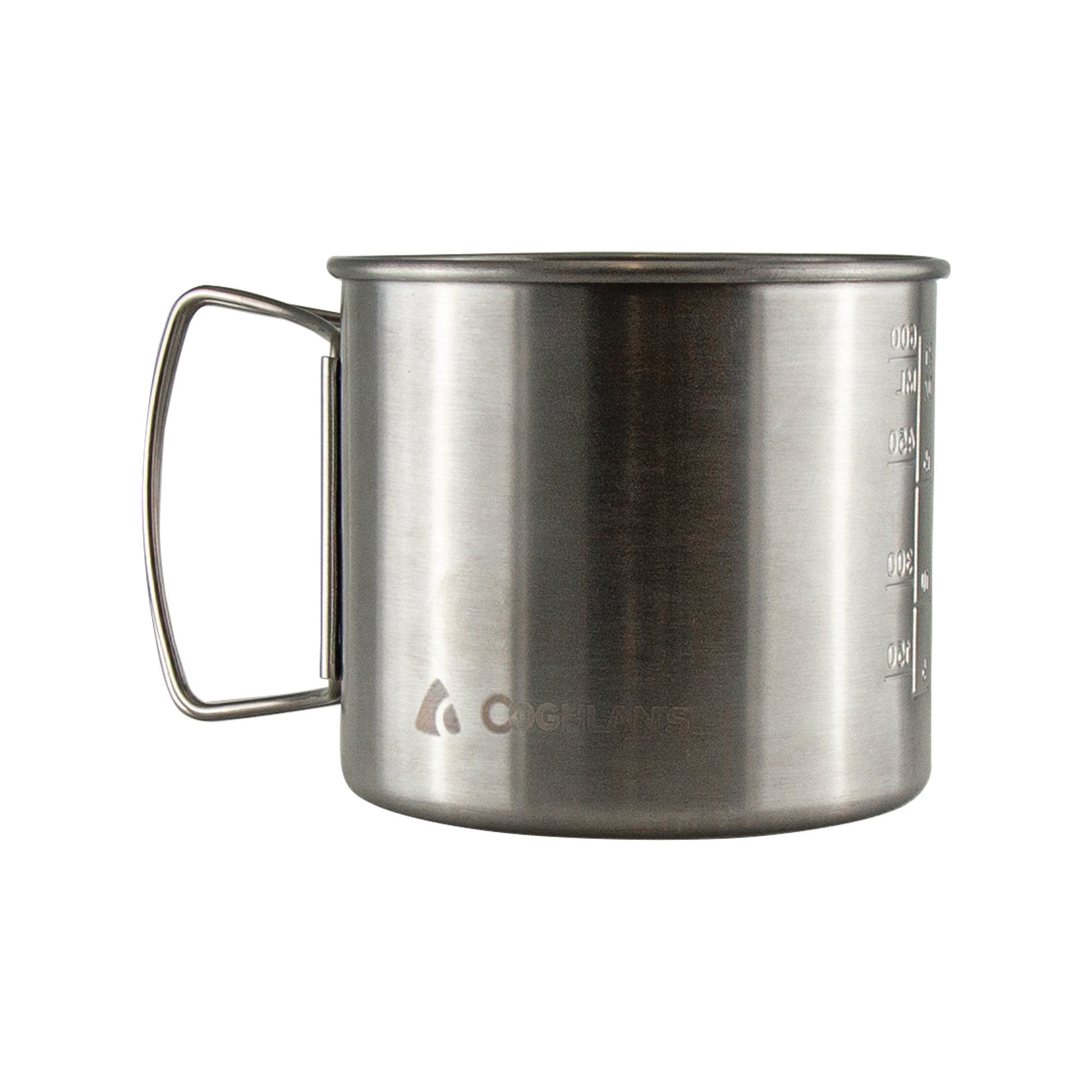 Coghlan's Camp Mug holds 600mL (21 oz.) of your favorite beverage, soup, or oatmeal, making it versatile and practical both at the campground and on the trail. Featuring volume measurement markings in 150mL (5 oz.) increments, the Camp Mug makes it easy to know how much water to boil for your dehydrated meal or ensure you've mixed the perfect campfire beverage. The wide-mouth design makes drinking and eating out of the mug easy. Featuring folding handles, you can easily stow the Camp Mug in your backpack or camping kit or use a carabiner to attach it to the outside of your pack. Made of lightweight stainless steel, Coghlan's Camp Mug weighs in at only 6.4 oz.