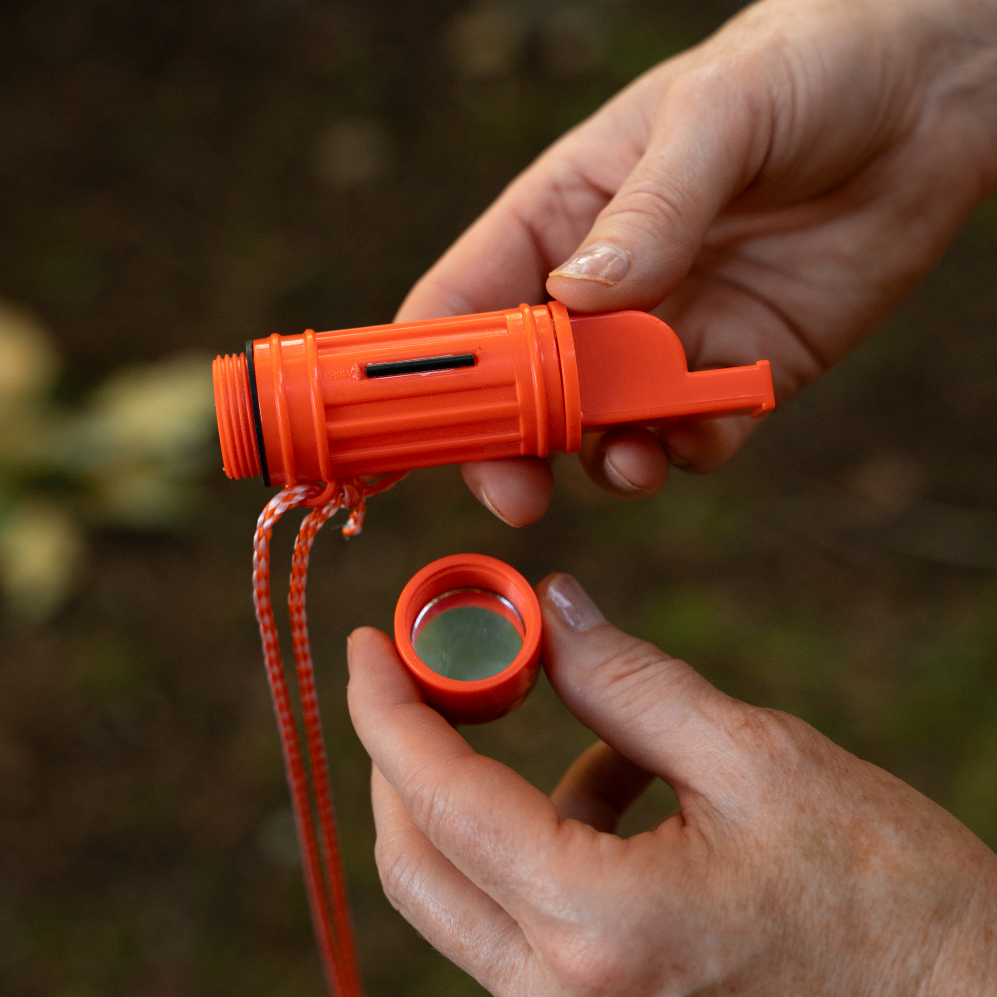 A host of survival features in a single item, the Coghlan's Survival Aid is a 5-in-1 tool for explorers seeking to save space in their pack. The Survival Aid functions as a waterproof match carrier, liquid-filled dial compass, fire starter flint, signal mirror, and signal whistle. Featuring a nylon lanyard, you can wear this tool while hiking or stash it in your pack as an emergency item.